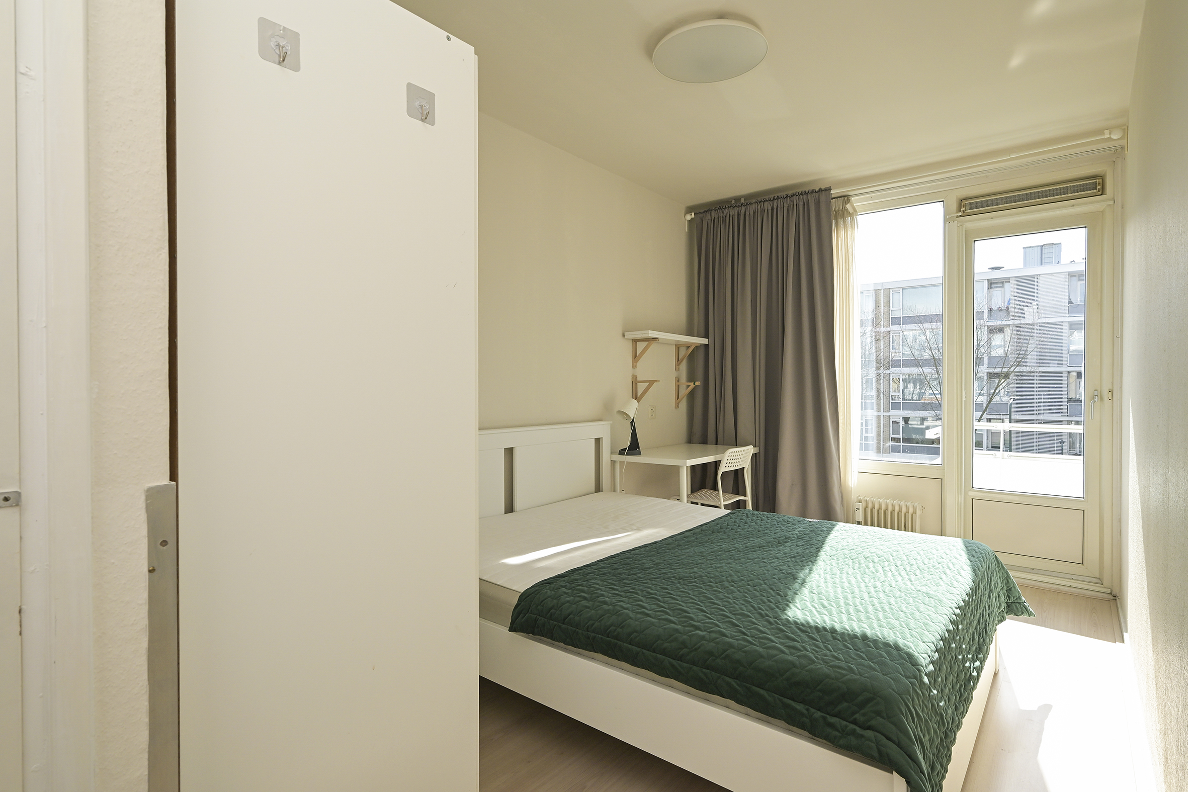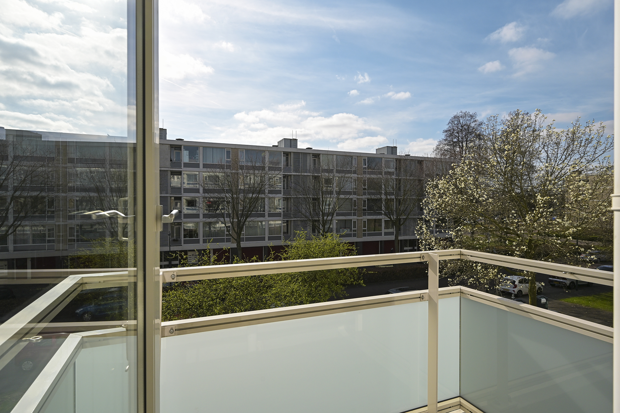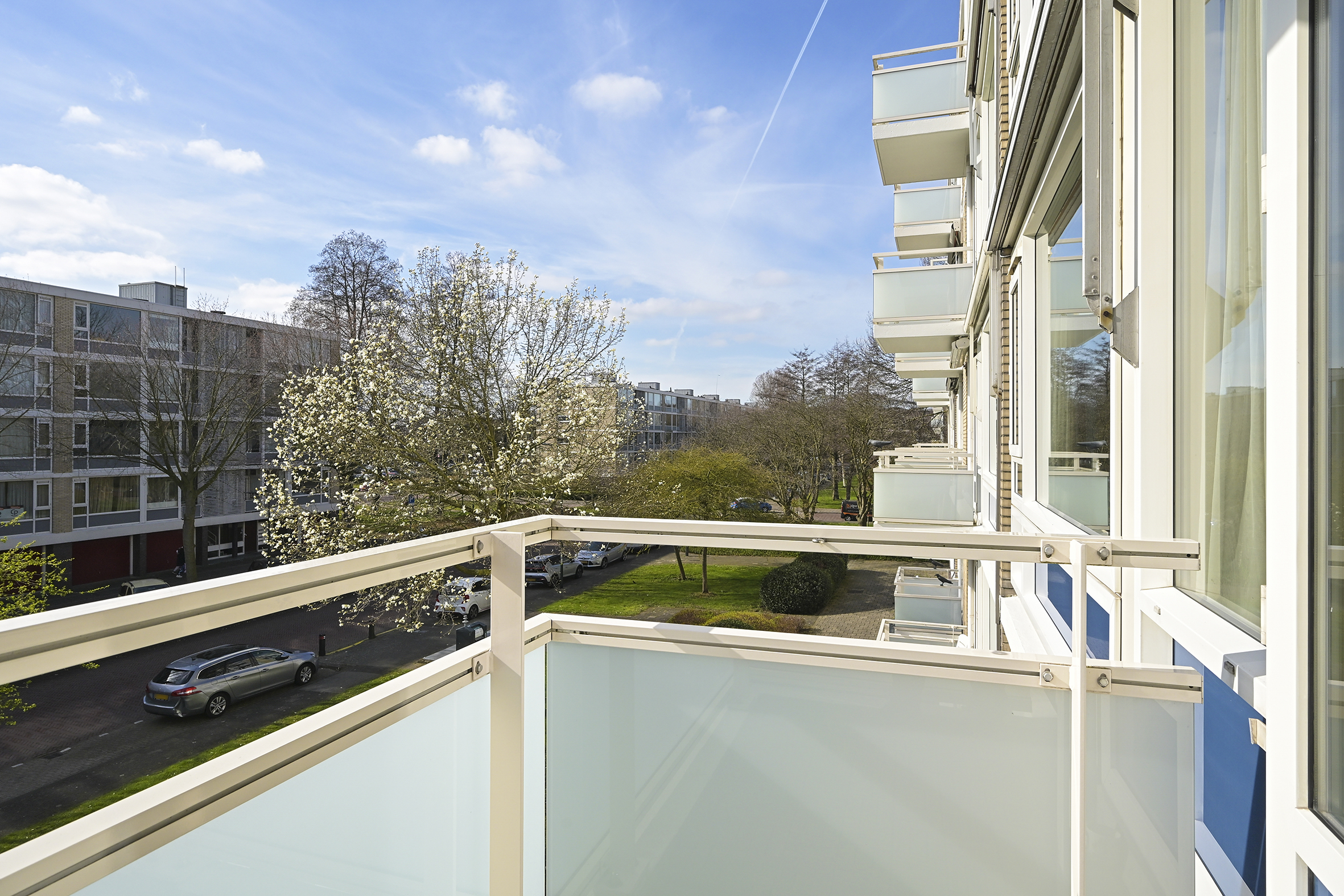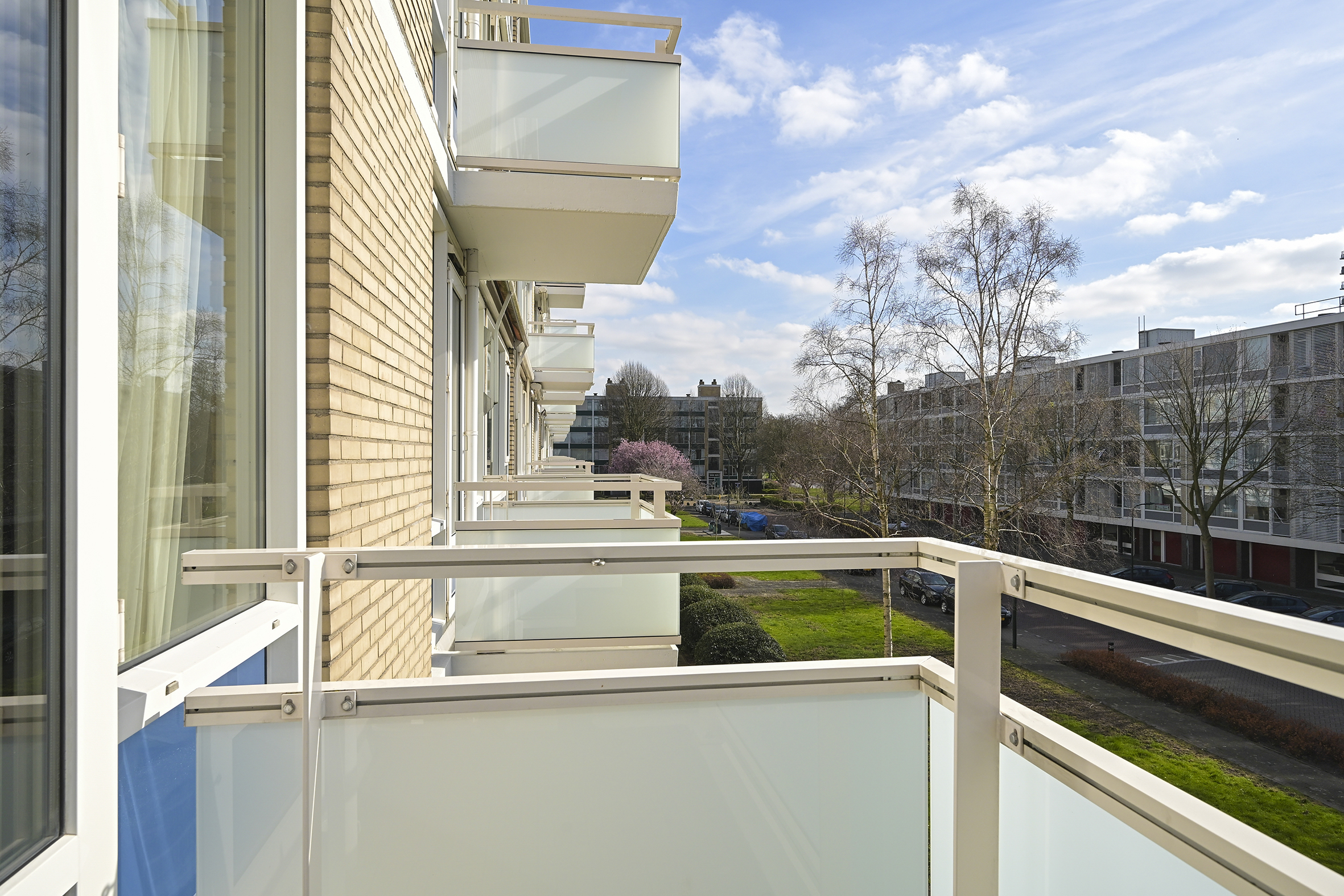 Aan de voorzijde liggen drie slaapkamers van uiteenlopende afmetingen, waardoor er flexibiliteit is voor slapen, werken of studeren. Vanuit deze kamers is er toegang tot het zonnige balkon op het zuidwesten, waar u in de middag en avond van de zon kunt genieten.