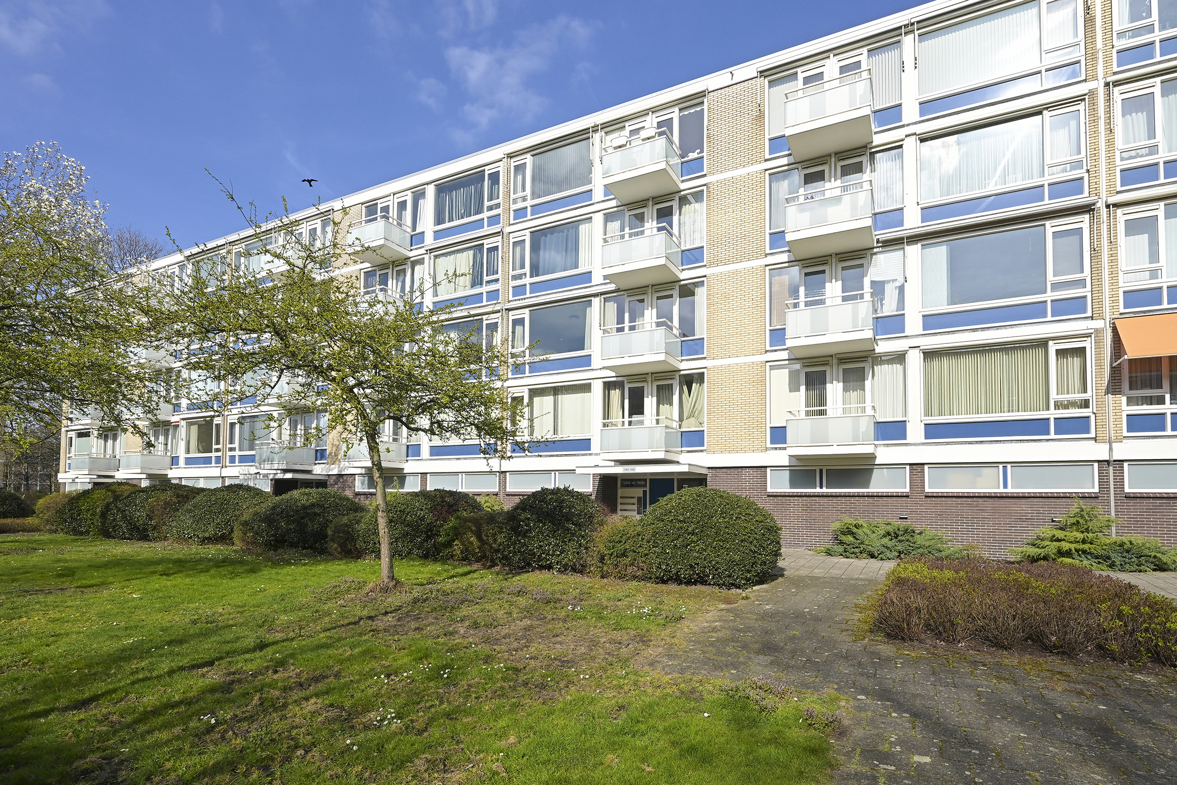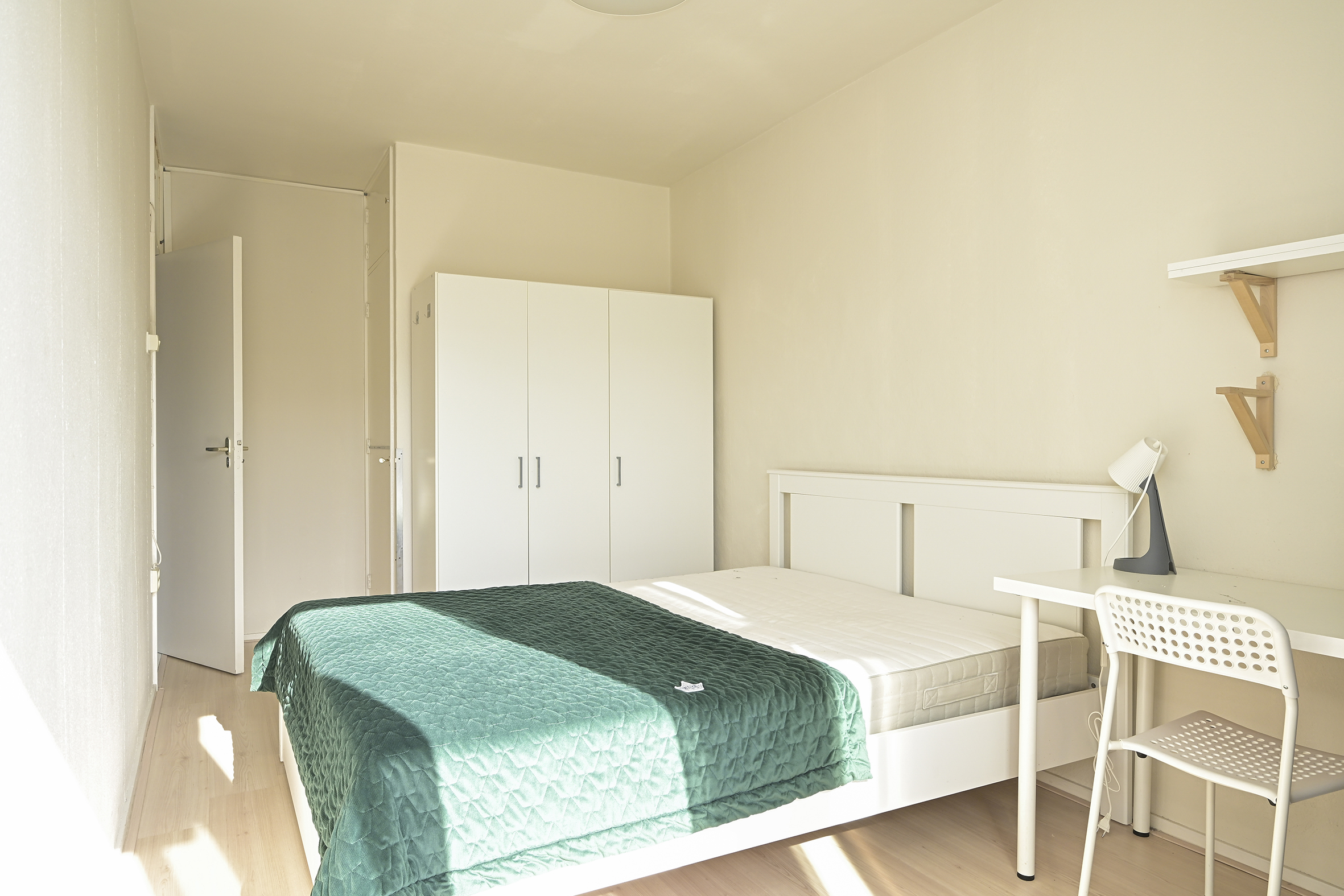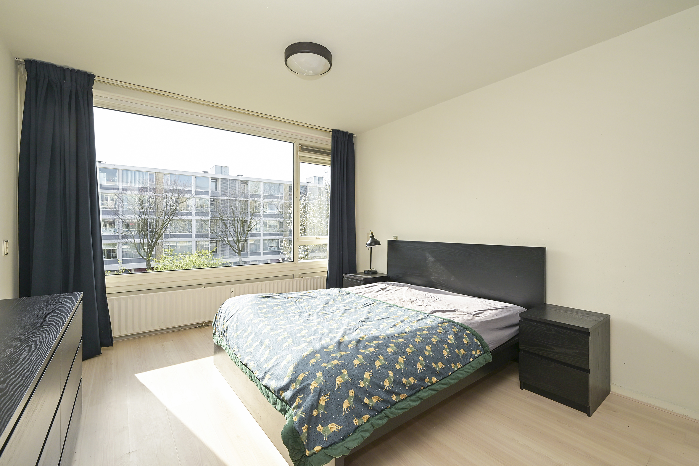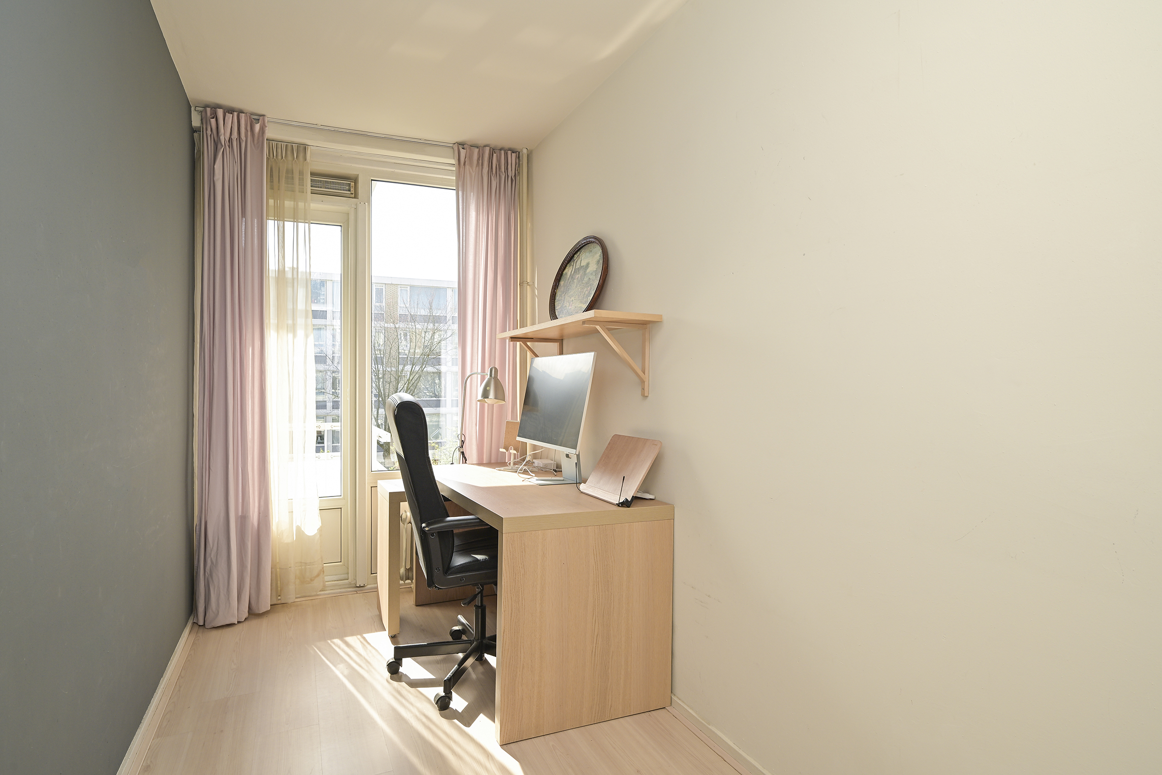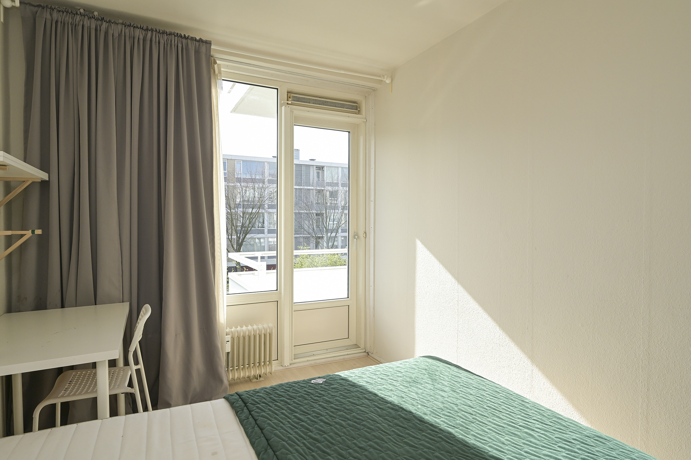 Aan de voorzijde liggen drie slaapkamers van uiteenlopende afmetingen, waardoor er flexibiliteit is voor slapen, werken of studeren. Vanuit deze kamers is er toegang tot het zonnige balkon op het zuidwesten, waar u in de middag en avond van de zon kunt genieten.