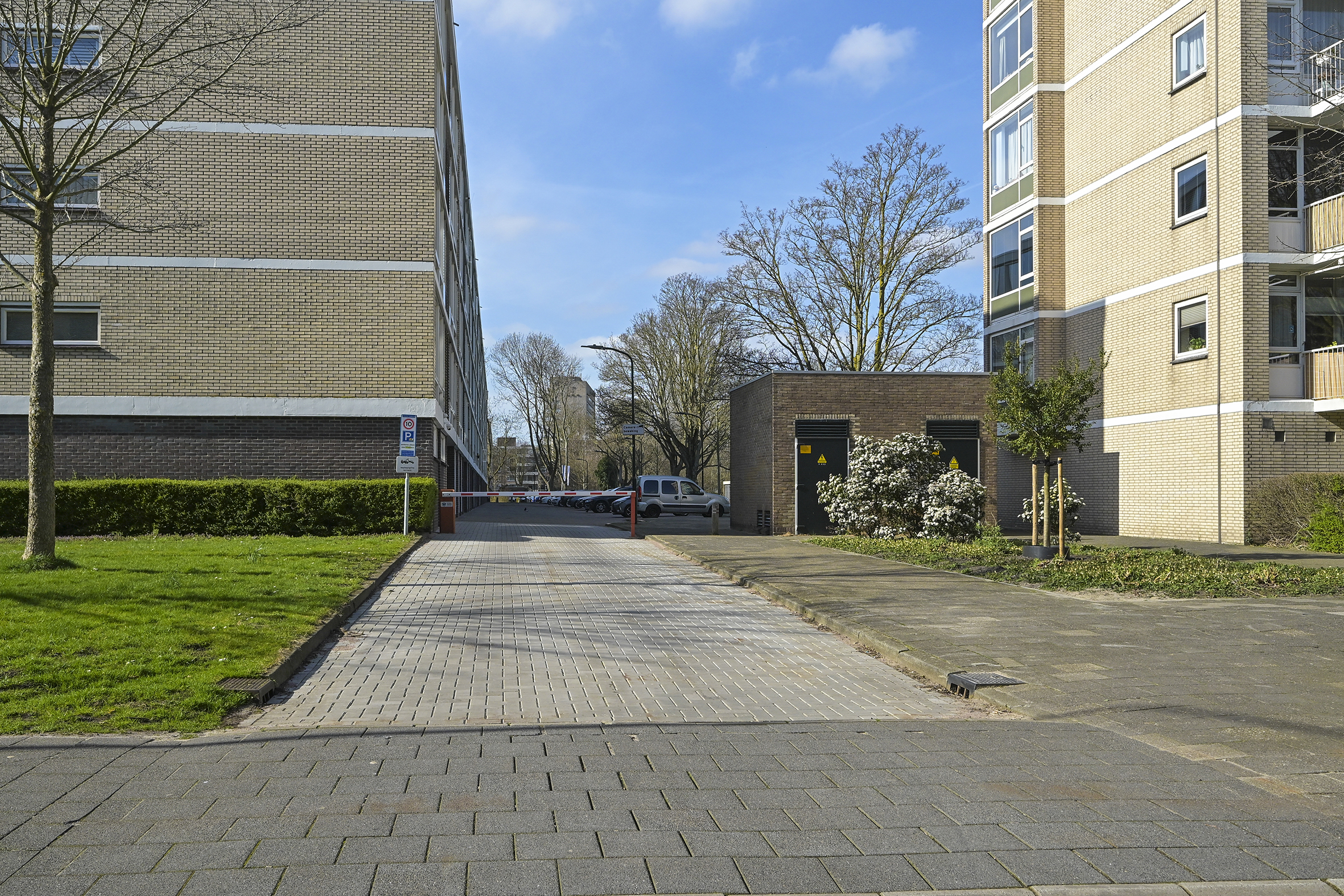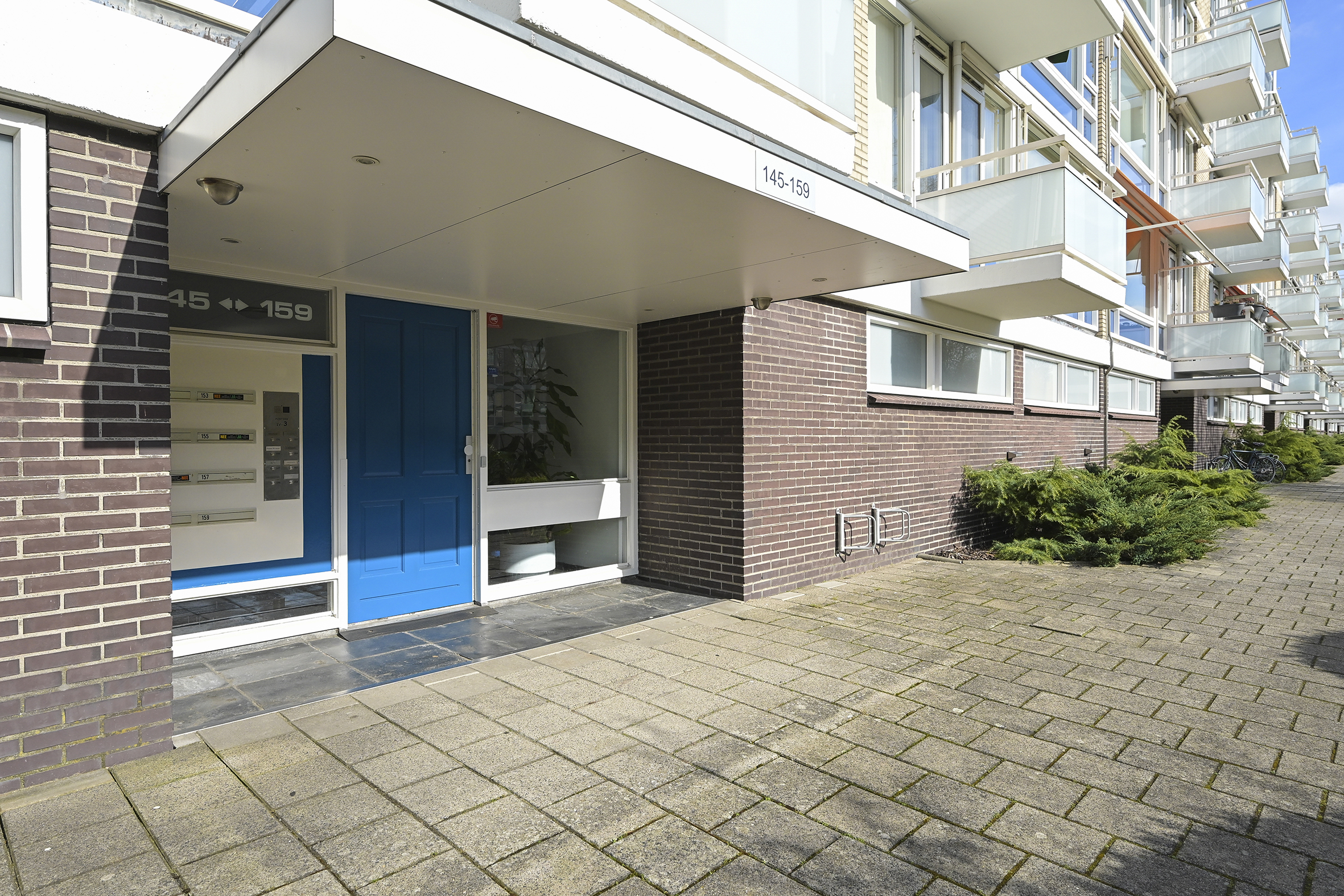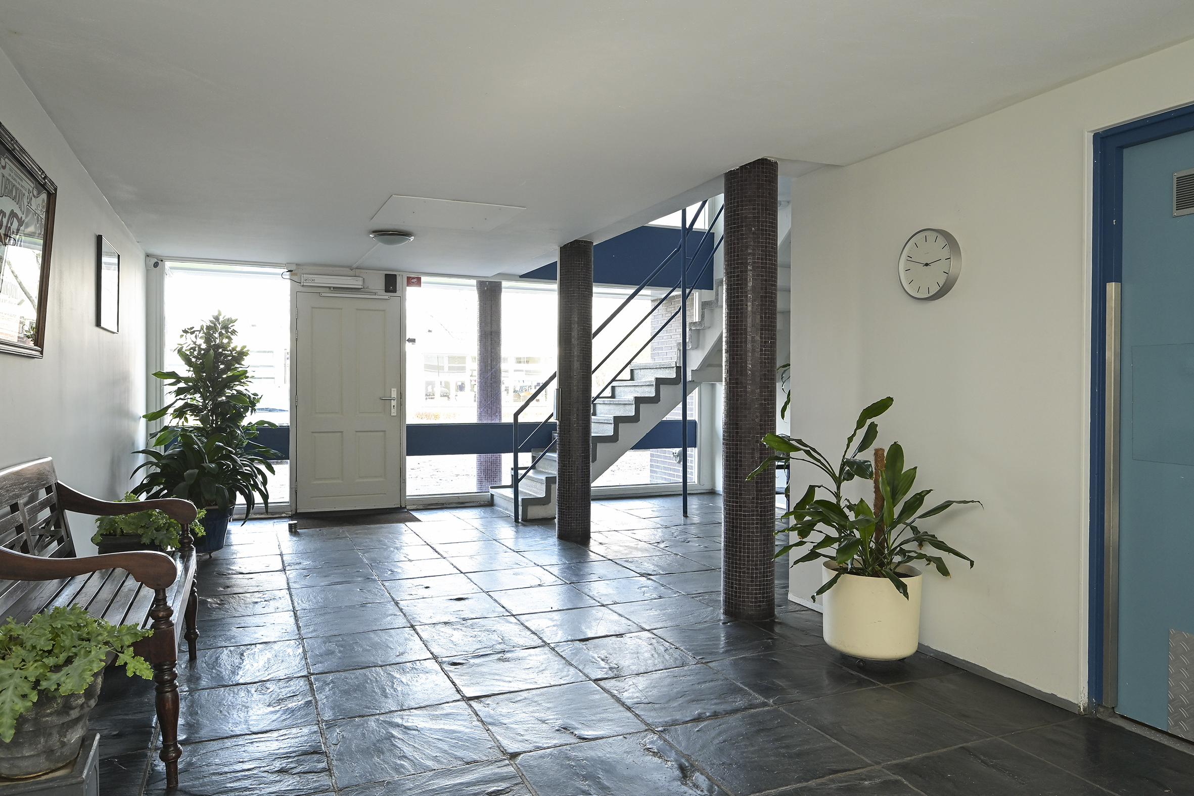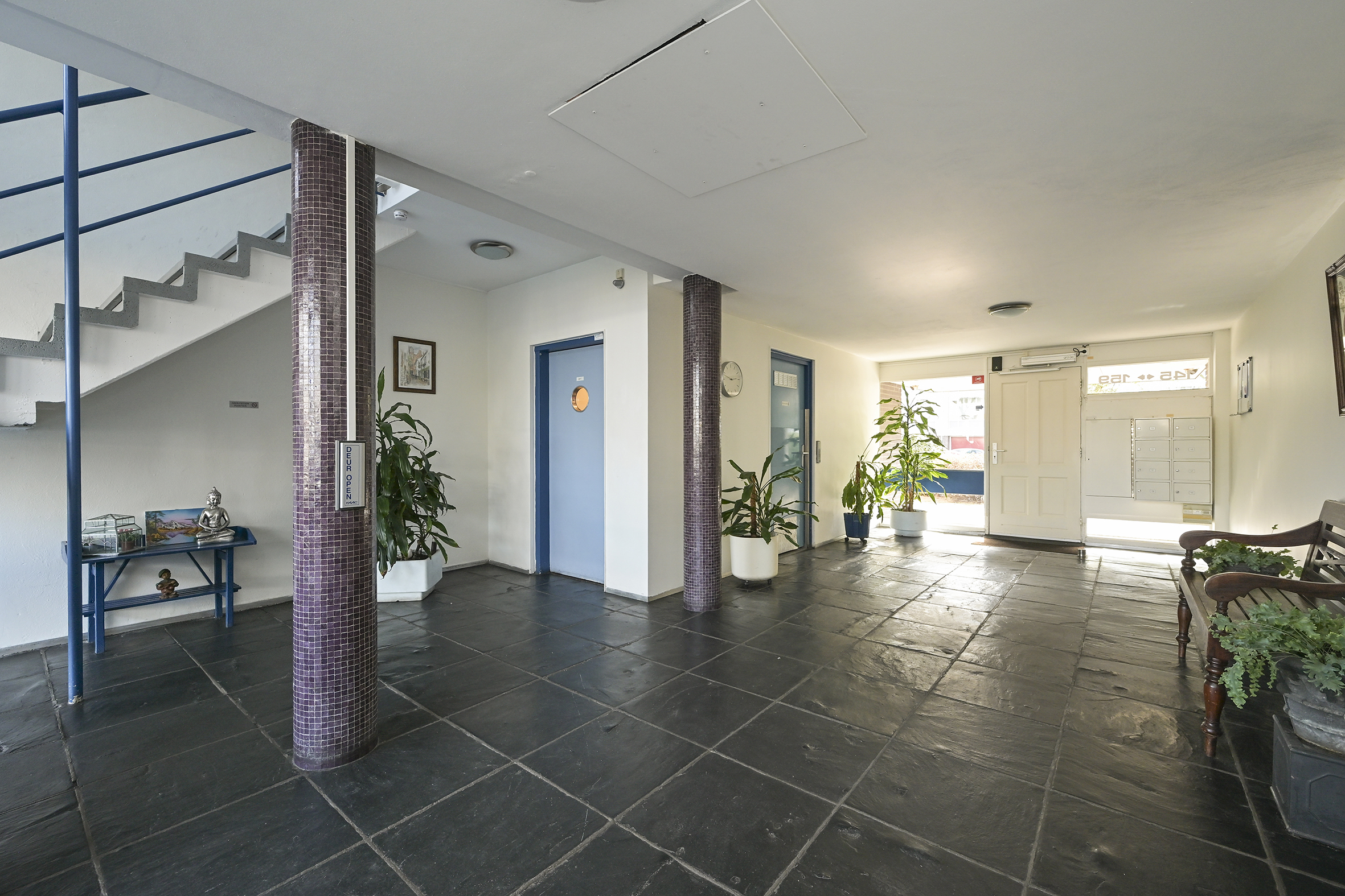 Gesloten entree met bellentableau en brievenbussen. Centrale hal met toegang tot de lift en het trappenhuis. Vanuit hier bereikt u ook de bergingen in de onderbouw.
