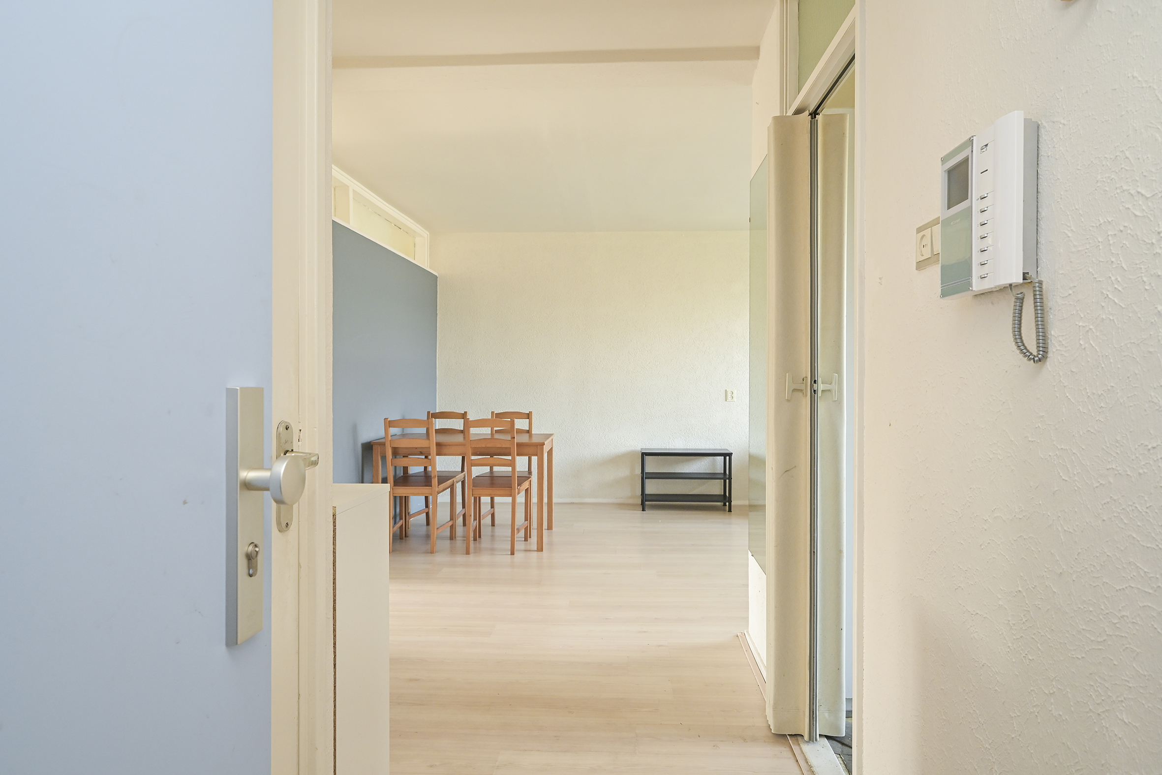 Entree appartement. Hal met meterkast en separaat toilet.