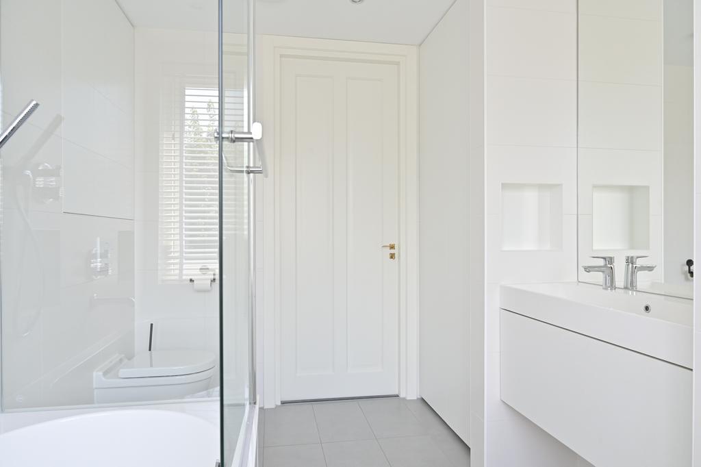 The bathroom is finished to a high standard and includes a walk-in shower, wash basin, toilet and access to a balcony.