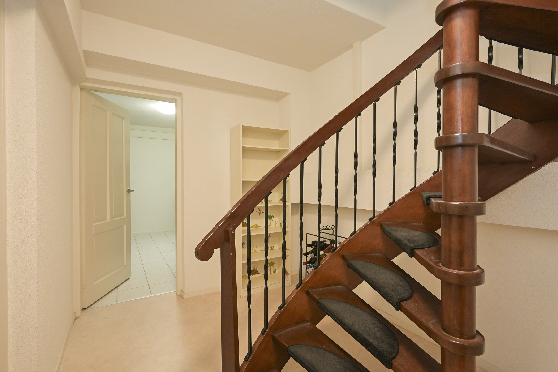 Via een spiltrap bereikt u het ondergelegen souterrain: