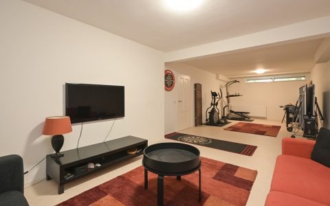 De ruime centrale hal geeft toegang tot de grote kamer. Deze is uitstekend geschikt als familiekamer, werkkamer of hobbykamer. Aan de voorzijde in het souterrain is er een grote berging en aan de achterzijde is de ruimte voor de wasmachine en CV opstelling.