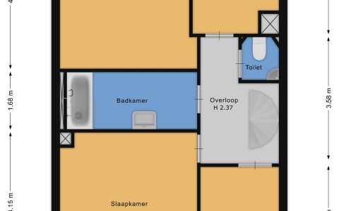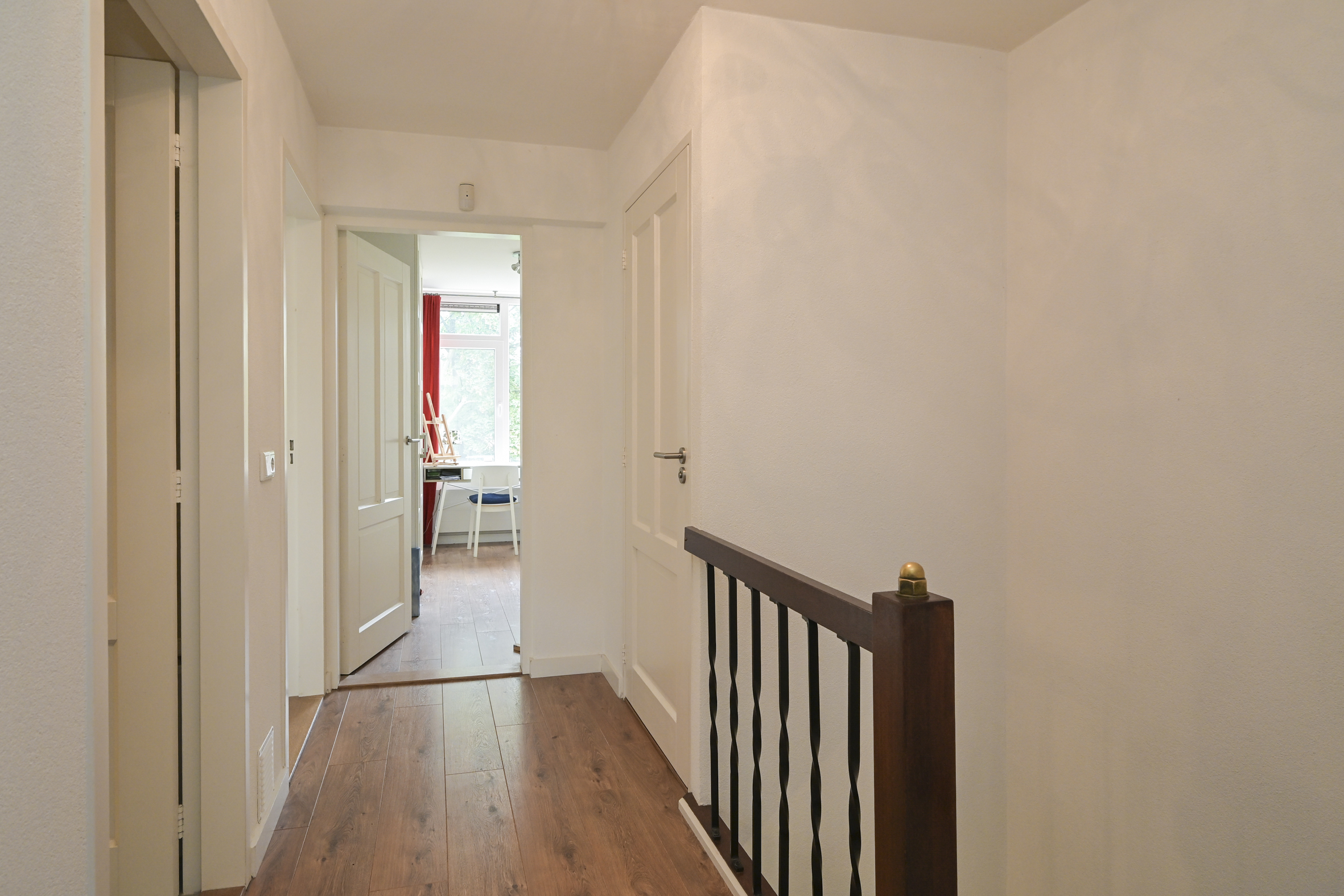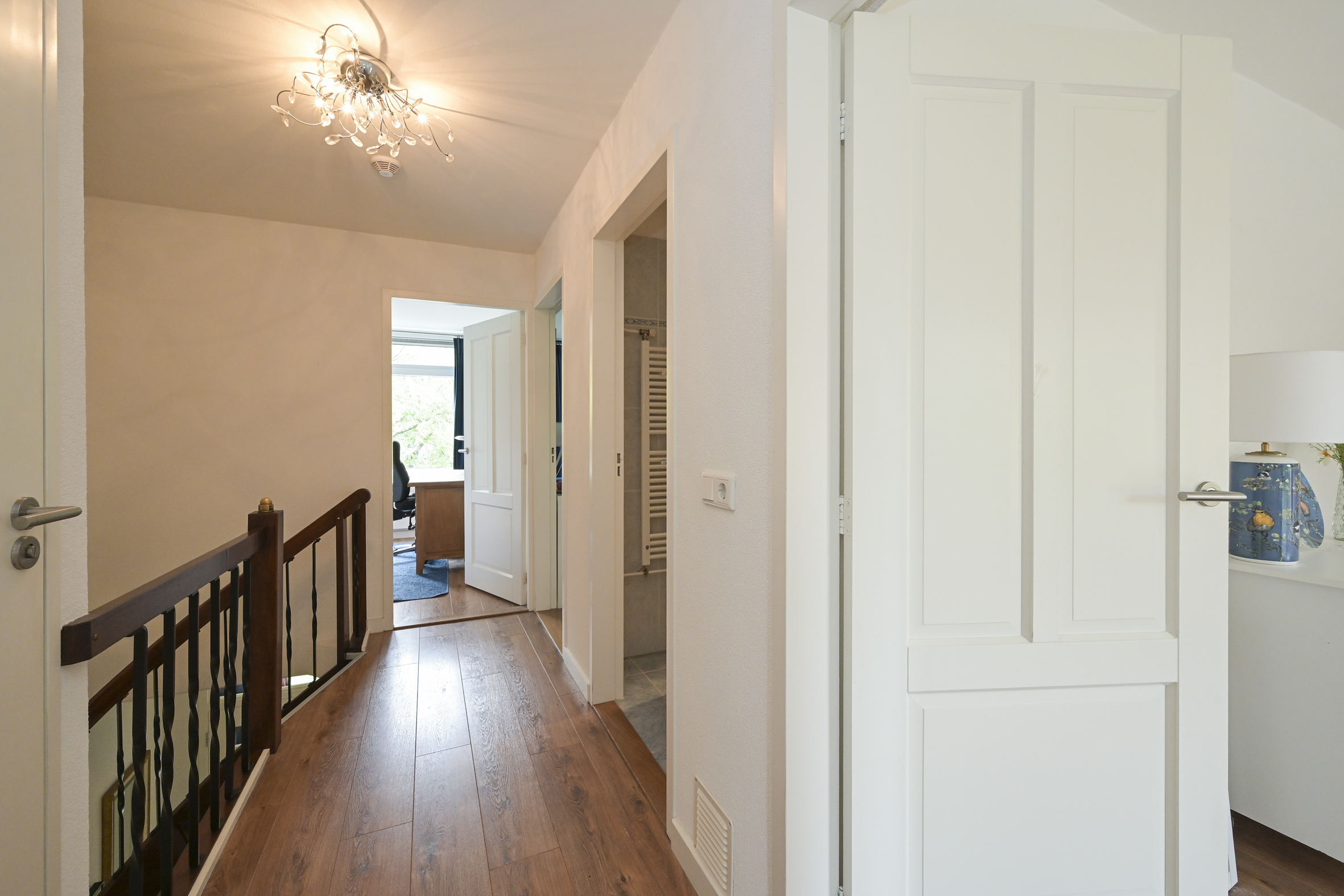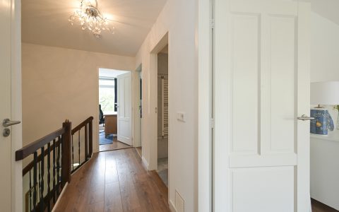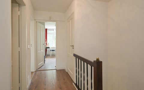 Ruime overloop en toegang tot tussengelegen goed onderhouden badkamer. Deze badkamer is voorzien van een ligbad en wastafel. Verder zijn er maar liefst 4 slaapkamers (2 grote en 2 kleinere) op deze ruime etage en een achterbalkon.