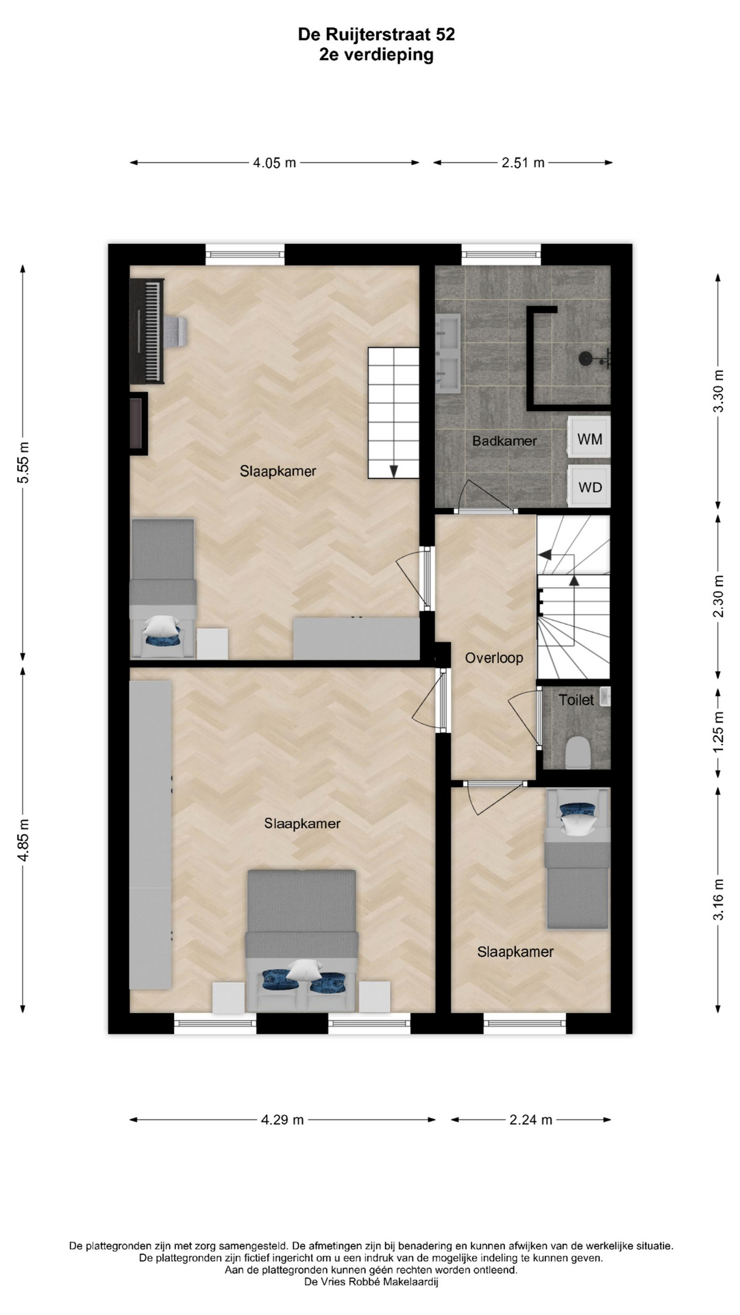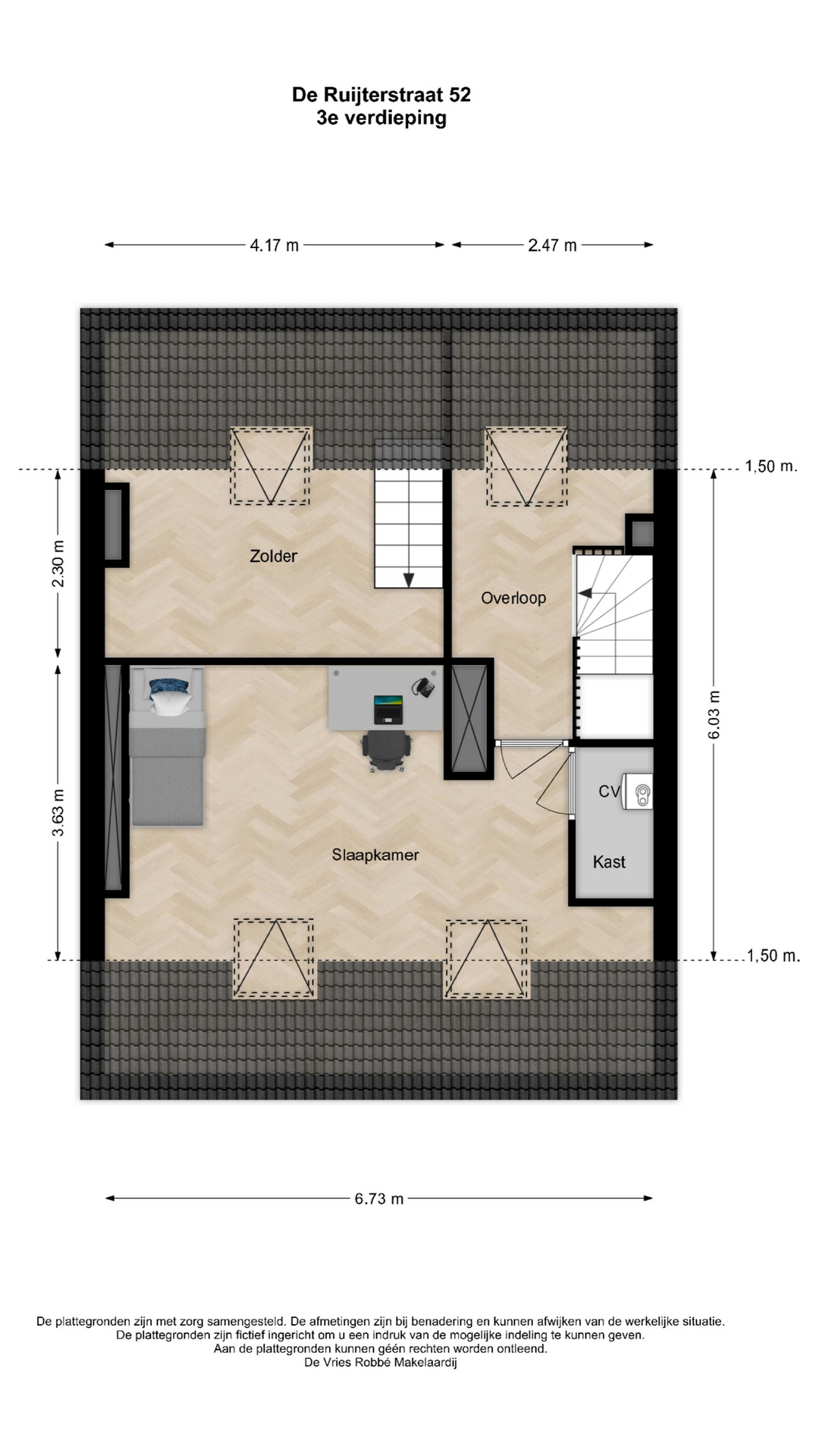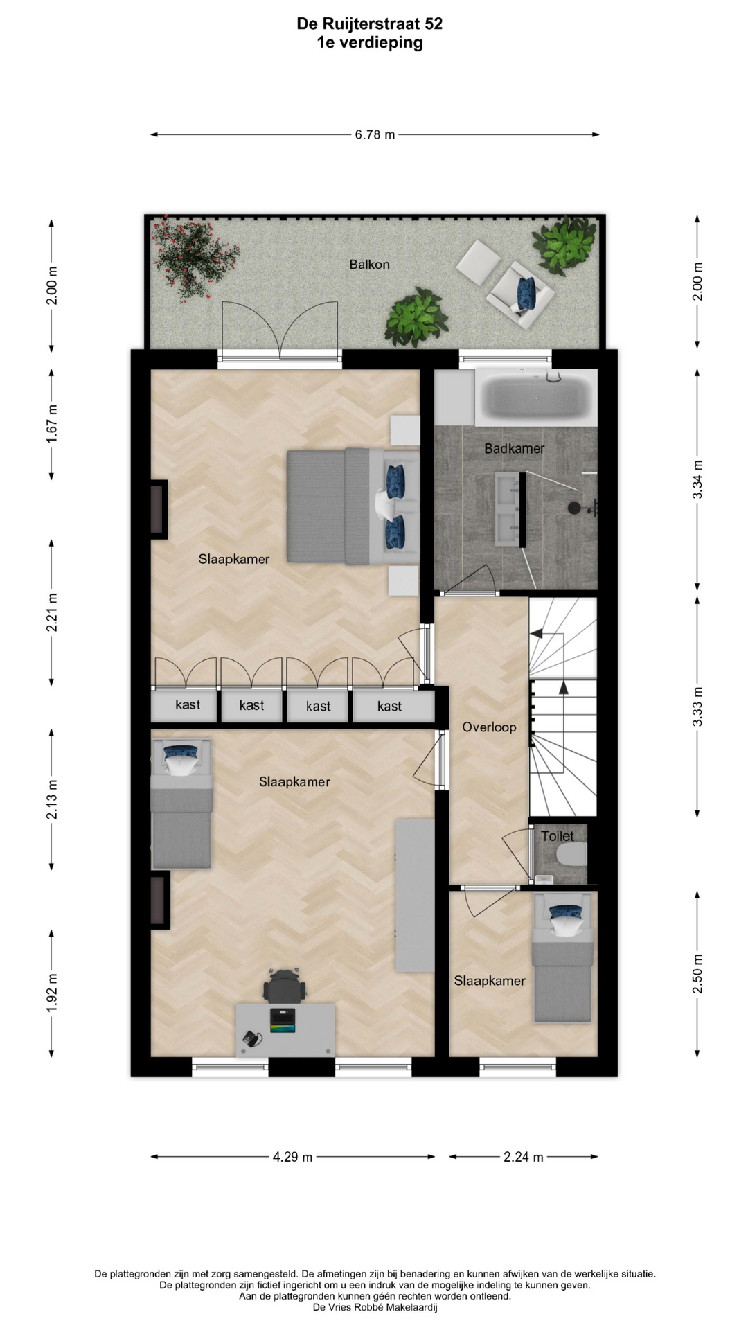 De informatie is met zorgvuldigheid opgesteld, aan de juistheid hiervan kunnen echter geen rechten worden ontleend. De Vries Robbé aanvaardt geen aansprakelijkheid voor enige onvolledigheid, onjuistheid of anderszins onjuiste informatie, dan wel voor de gevolgen hiervan.