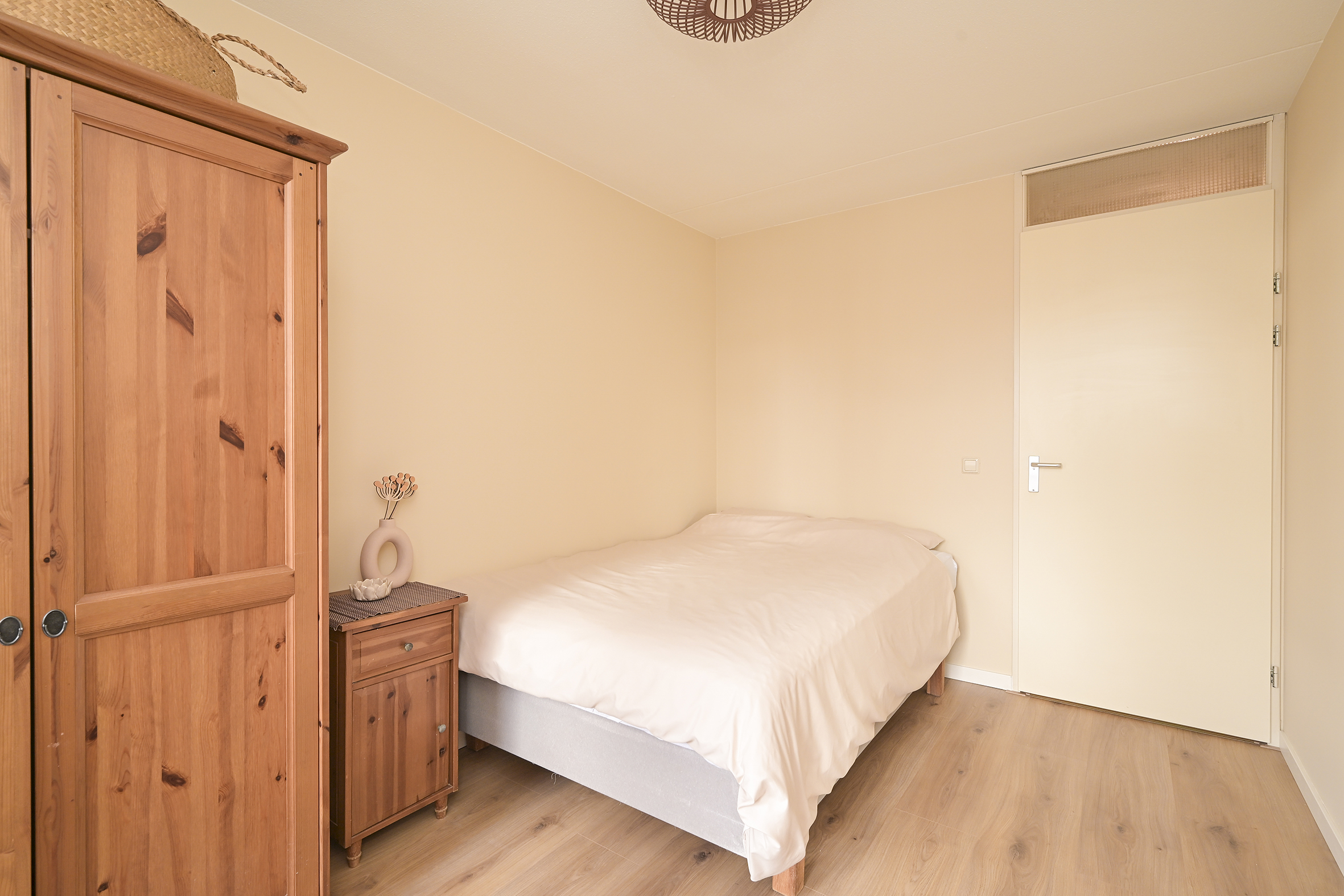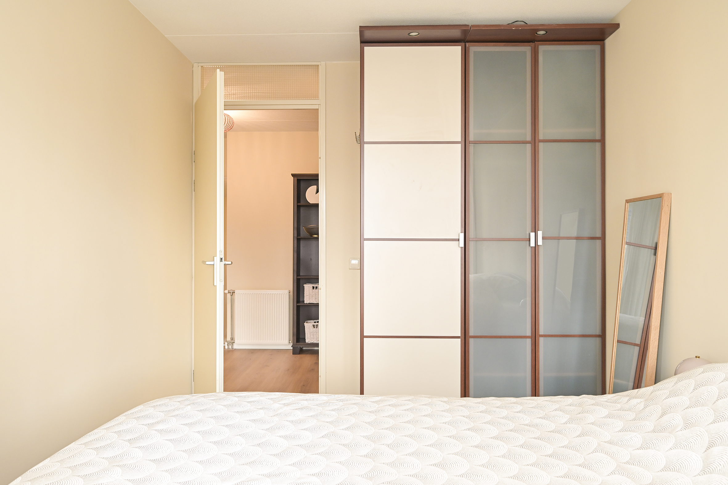 The apartment stands out for its generous living space. The living/dining room is spacious (approx. 42 m² as stated) and connects naturally to the open kitchen, creating a practical and welcoming heart of the home. From the living room you step out onto the balcony. At the front side, facing the Fluwelen Burgwal, you will find two well-proportioned bedrooms, both with access to the balcony.