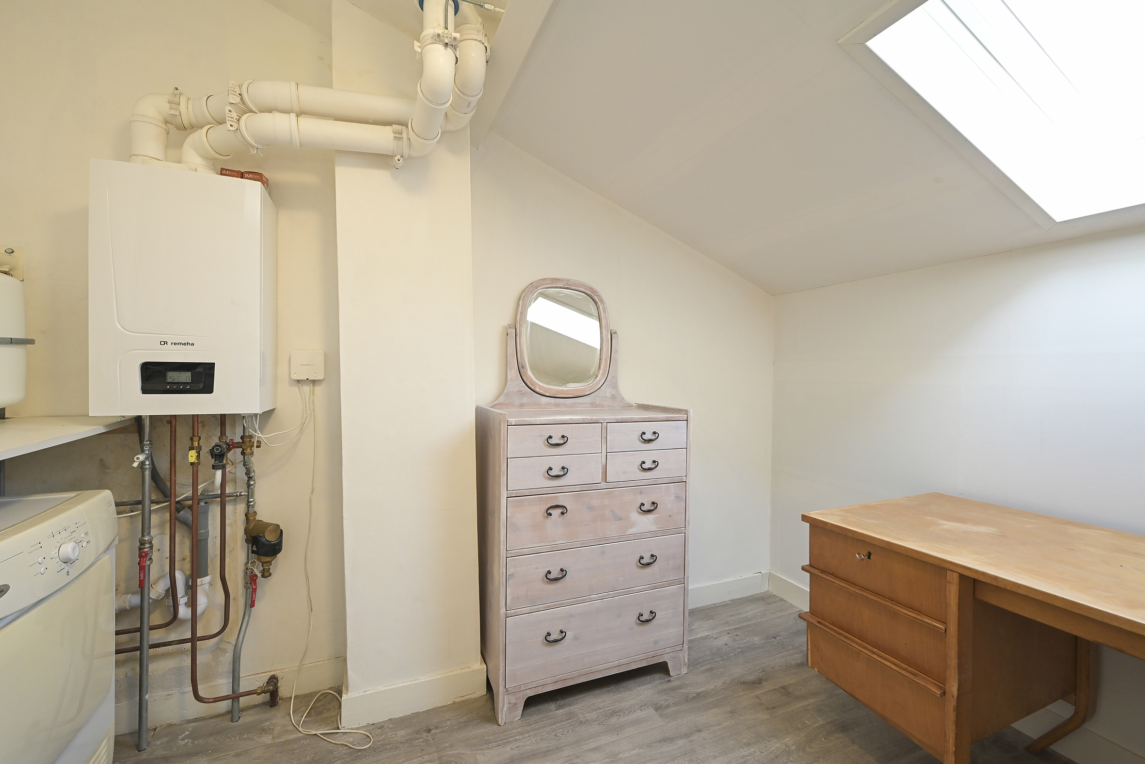 At the front, there is a practical utility room housing the central heating system, washing machine and dryer.