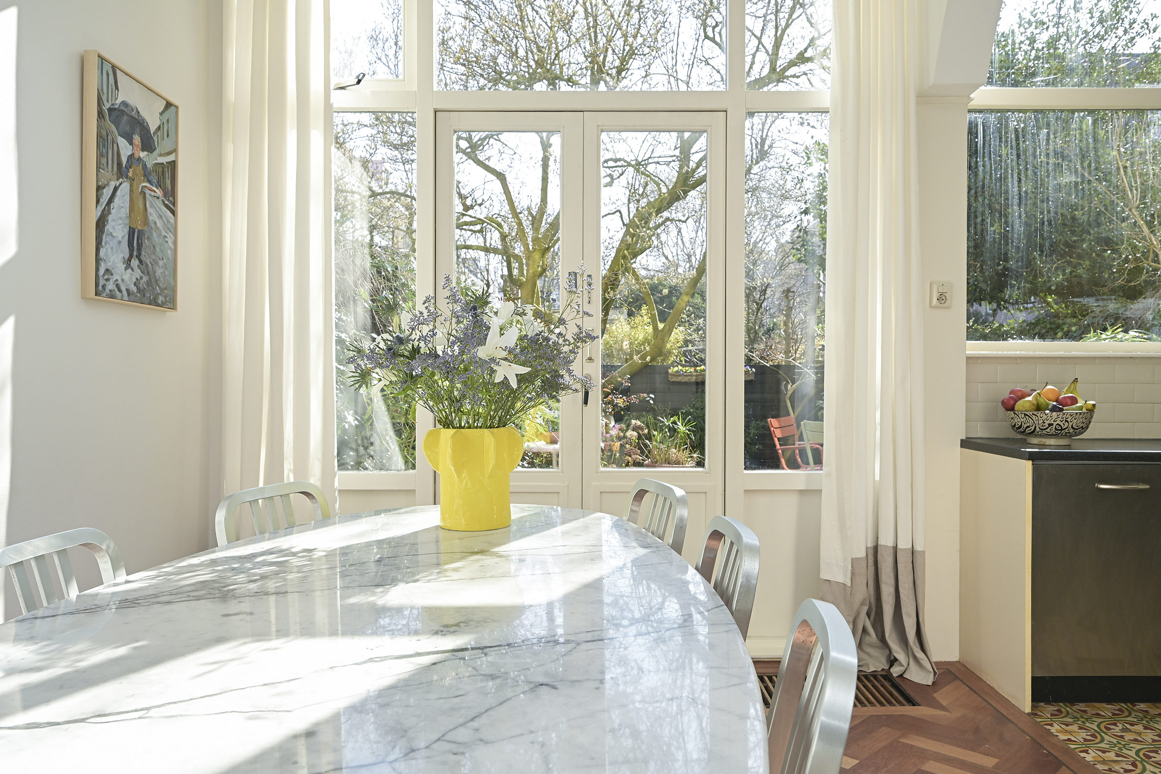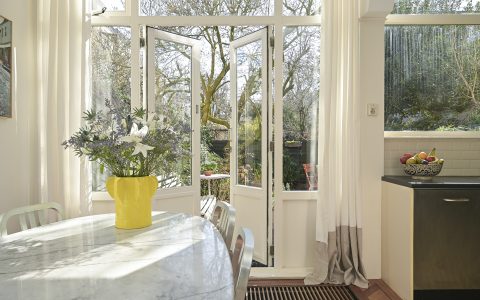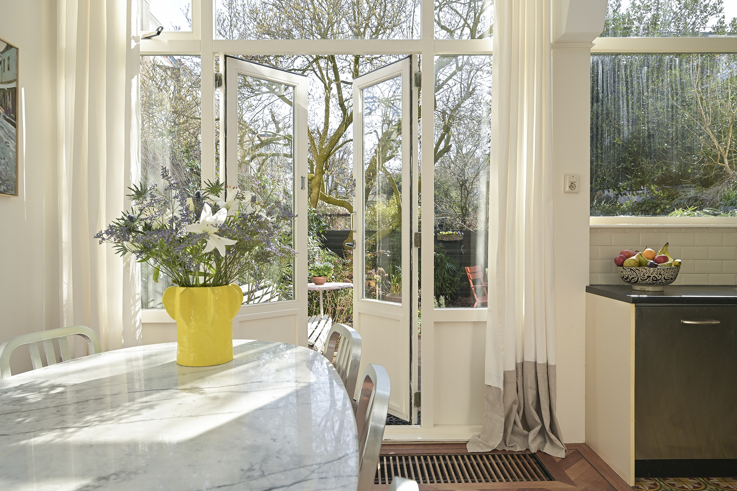 * Nagenoeg het hele huis beschikt over houten kozijnen met isolerend dubbel glas