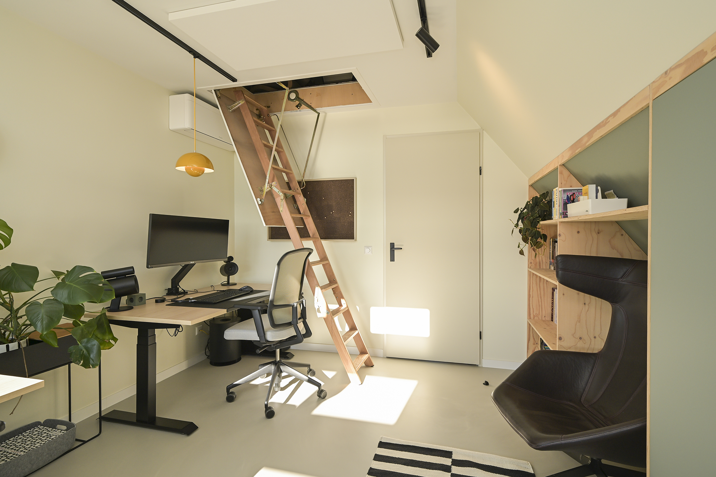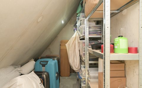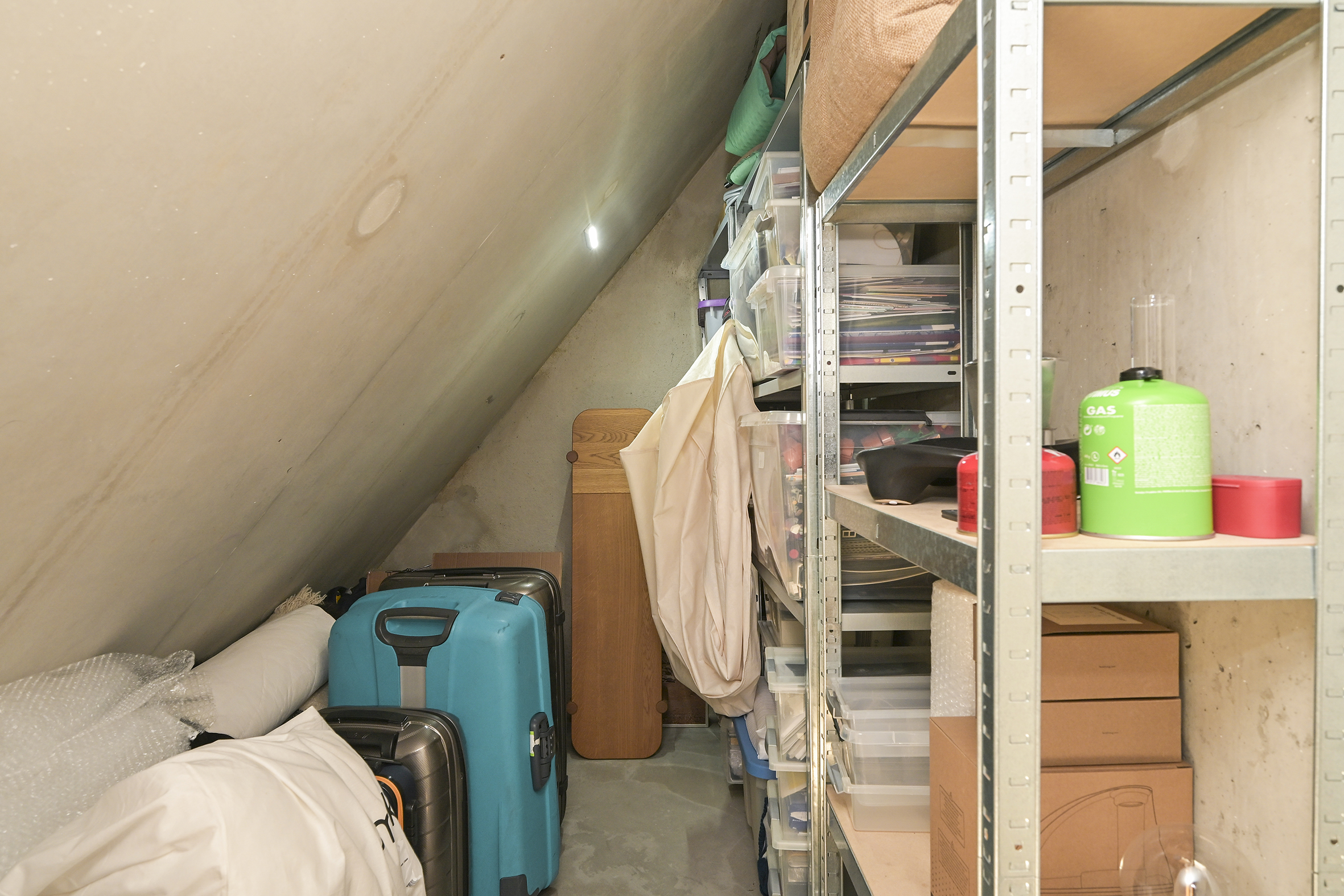 Middels een vlizotrap is vanuit de tweede slaapkamer een zolder bereikbaar, ideaal als extra opslagruimte.