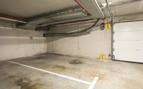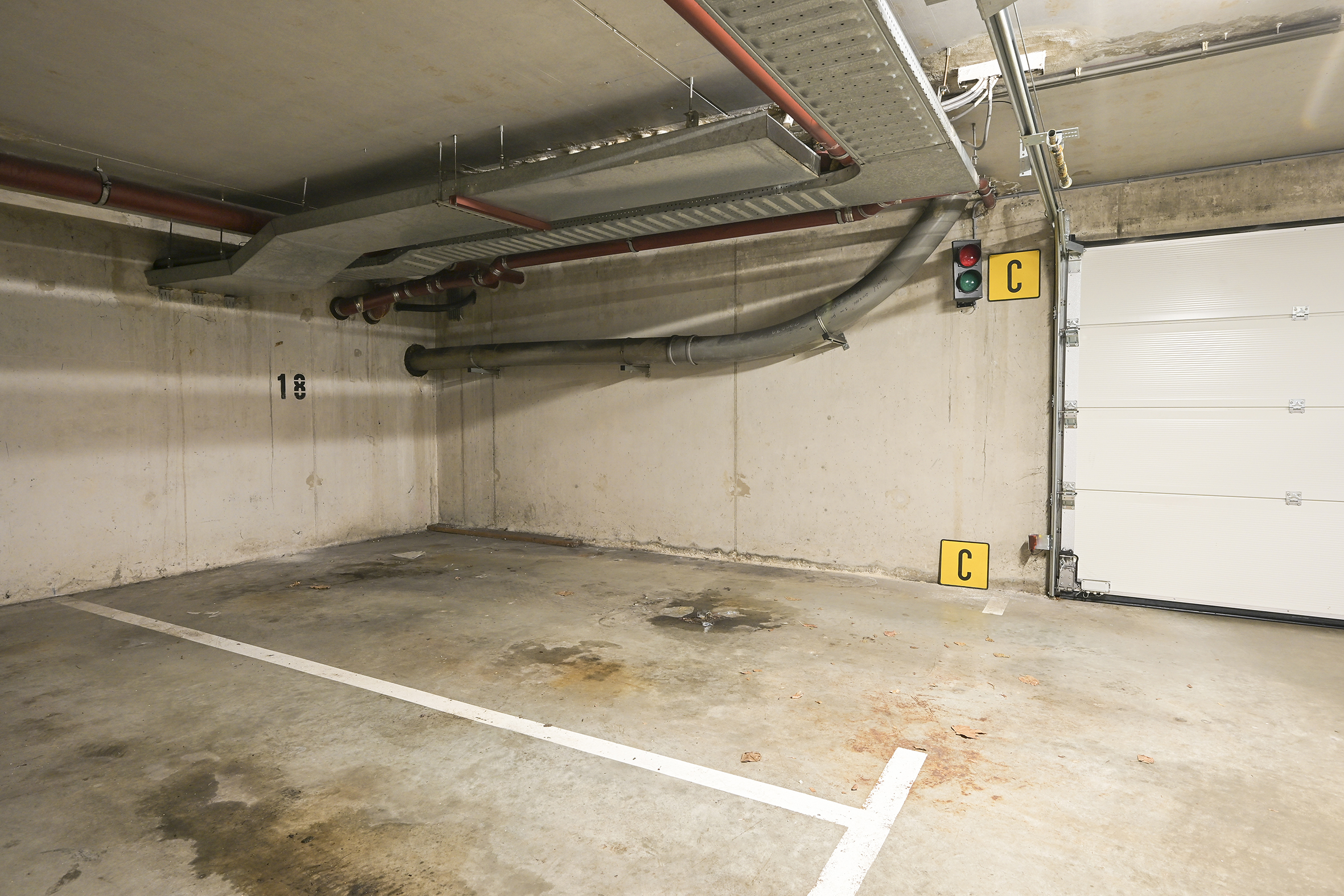 Parkeren kan in de afgesloten parkeergarage op -1. De woning wordt aangeboden met verplichte afname van een parkeerplaats à € 25.000,- k.k.